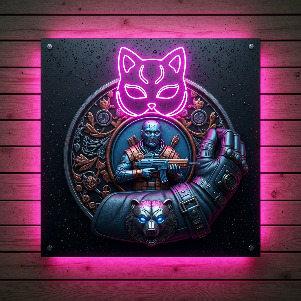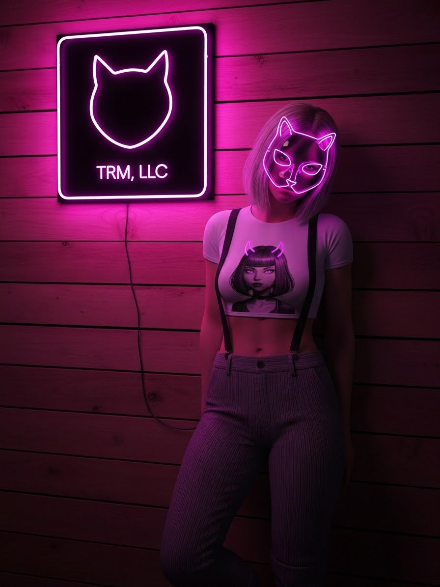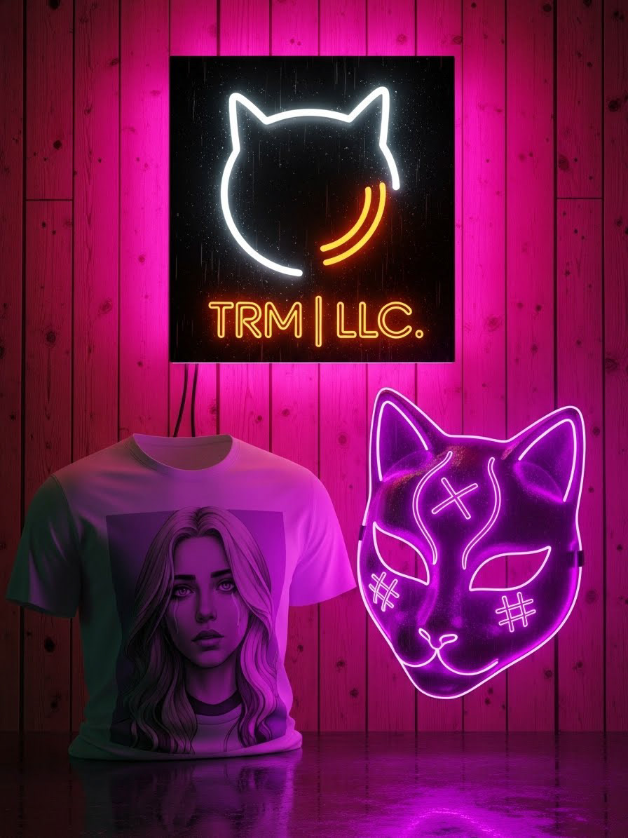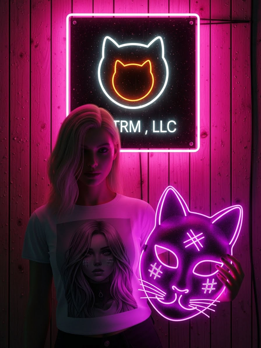 TRM LLC NEON SIGN WITH CAT'S HEAD SILLOUETTE.
