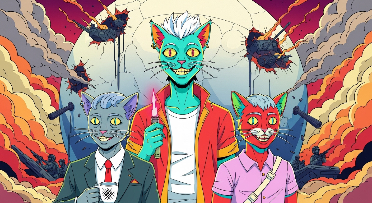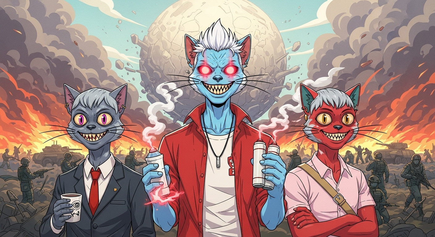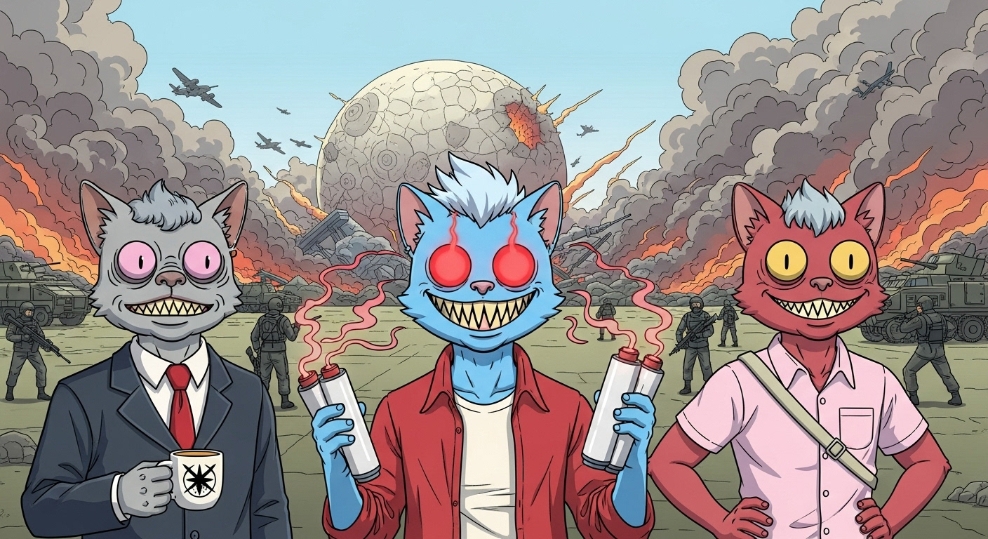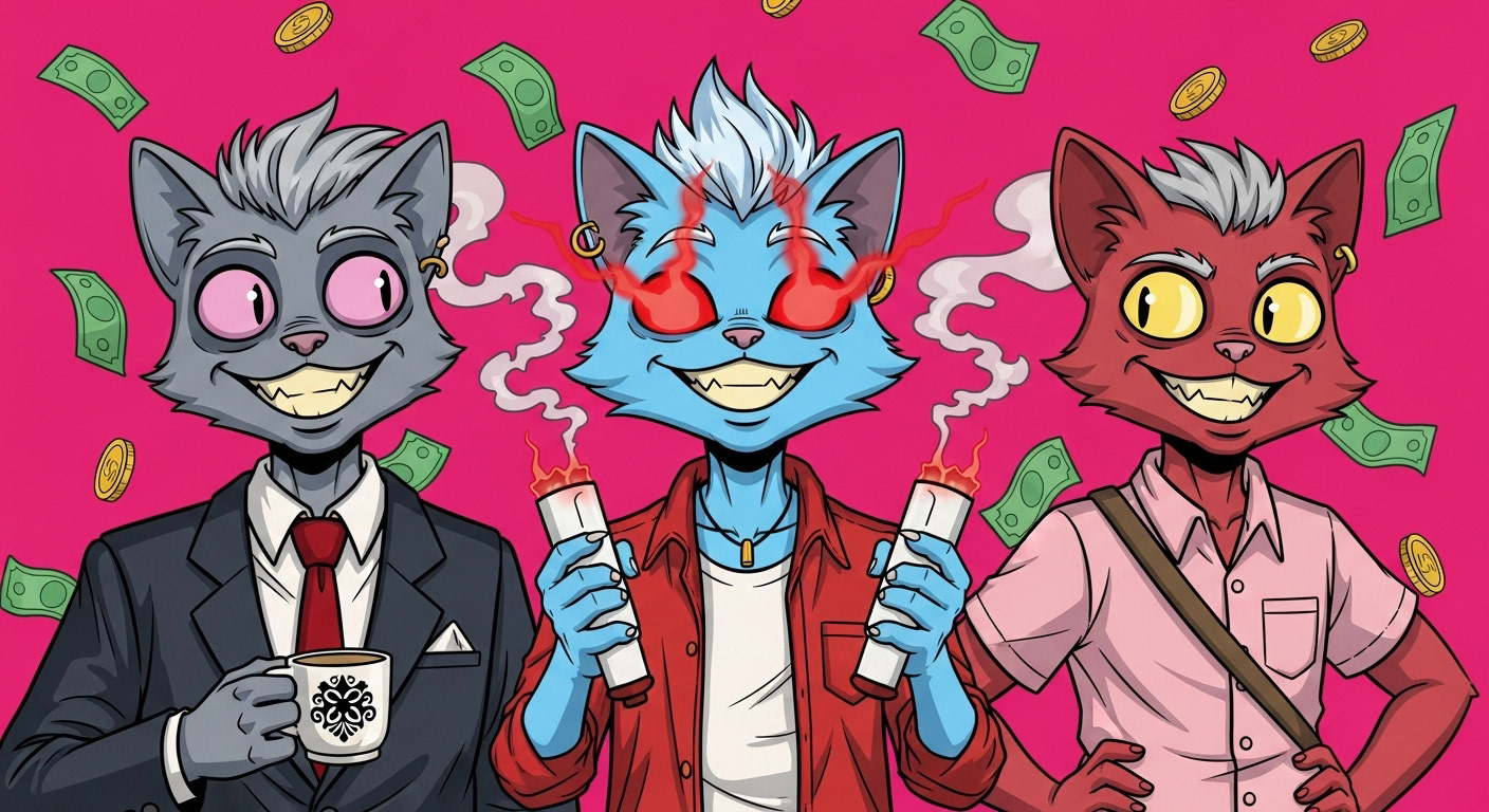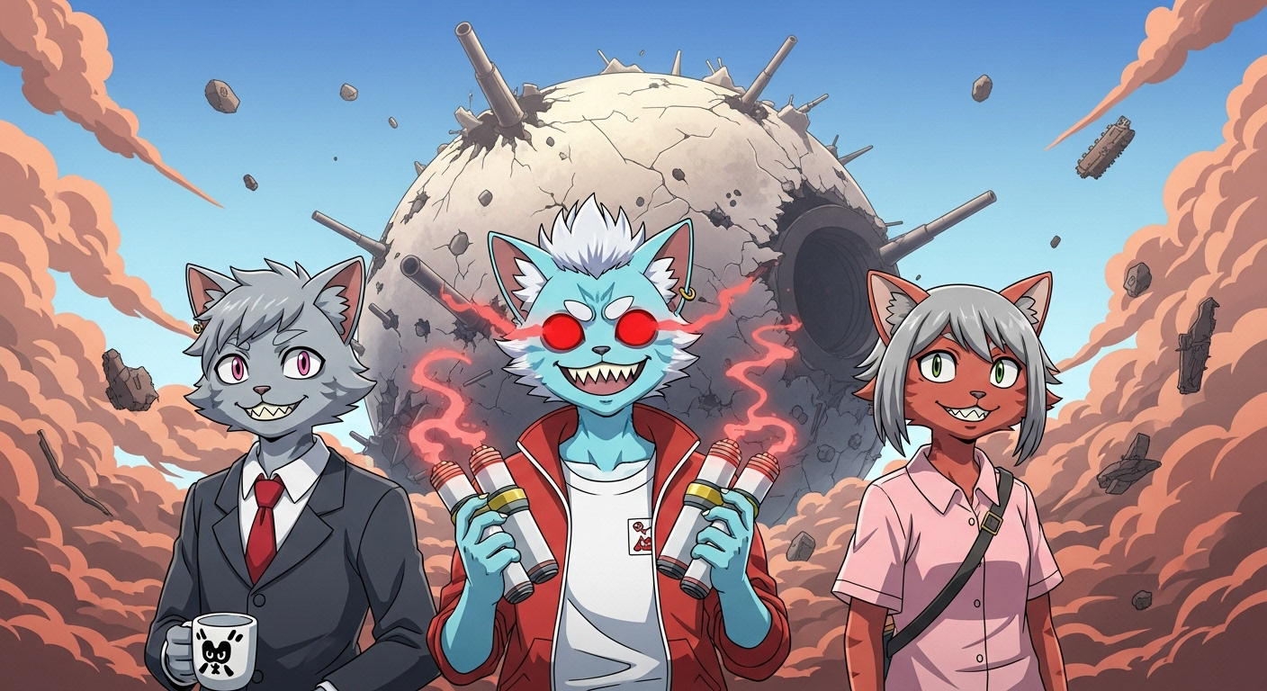 Anyway, while I was distracted with my less than memorable jaunt down recollection boulevard apparently we figured out a fix for the unholy stellar union of the demon and the comet, Kronos-714. Not sure exactly what happened but... hey, money! Yay. Looks like all is well that ends well. Or maybe this is just a stock photo of some other three cat-people watching money rain down on them from what appears to be a, completely pink sky... and one with glowing red eyes that seem to be spilling out some kinetic energy? I really don't know. Let's just say that maybe things worked out, and maybe we don't really care.