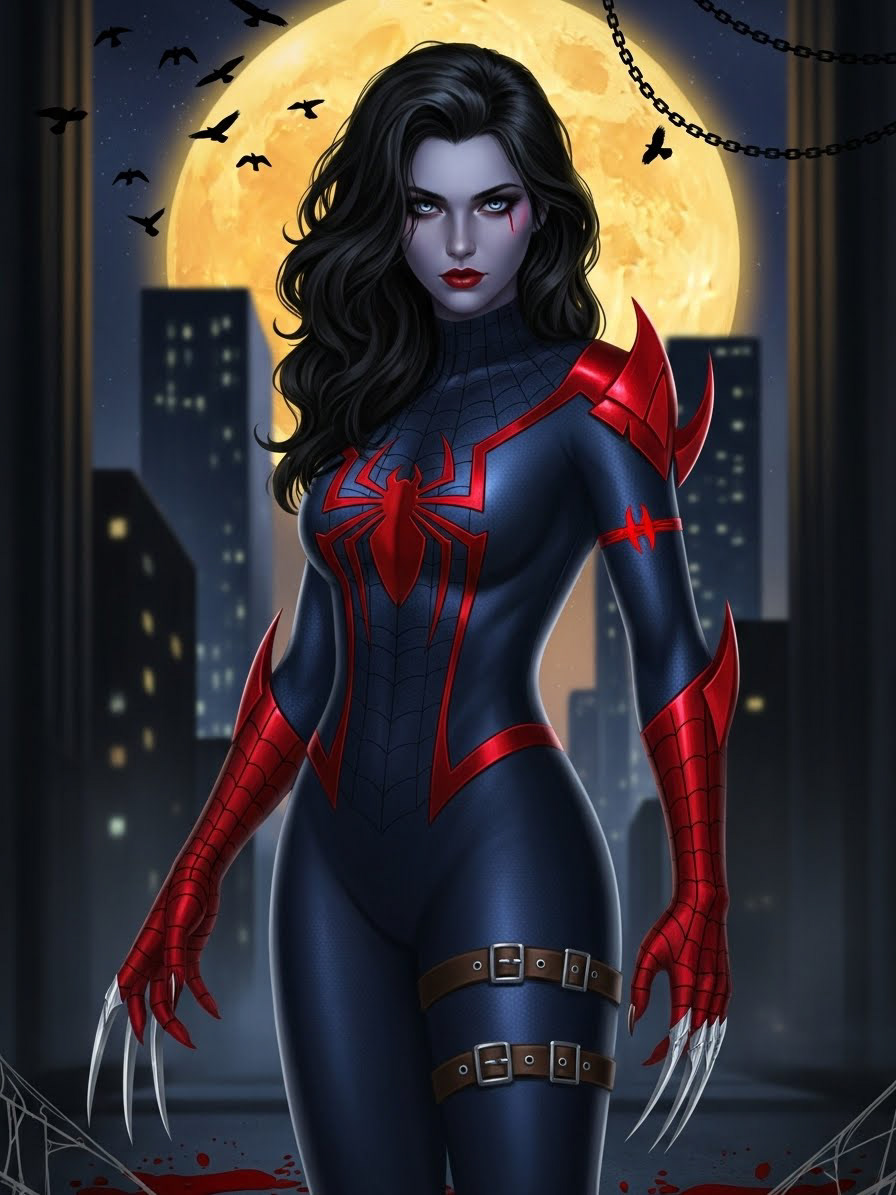 In her world her parents, Peter and Mary Jane, were killed at home in their bed late one night by one Kraven The Hunter, who found himself unable to murder the then just 7 years old Perigrime. He instead adopted her and raised her as his own teaching and training in his image.