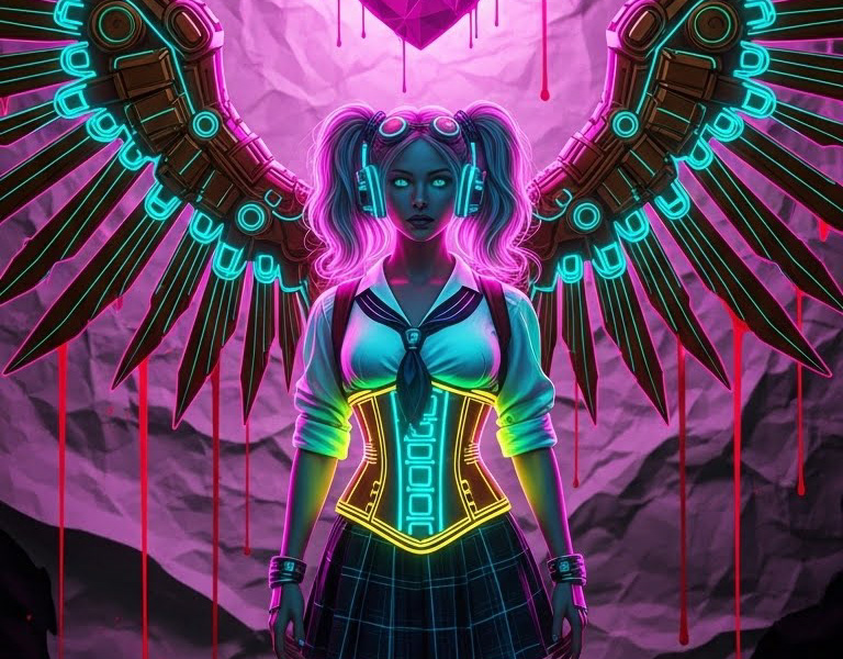 A graphic profile into the character Mercury from Renegade Battle Angel Girls.
